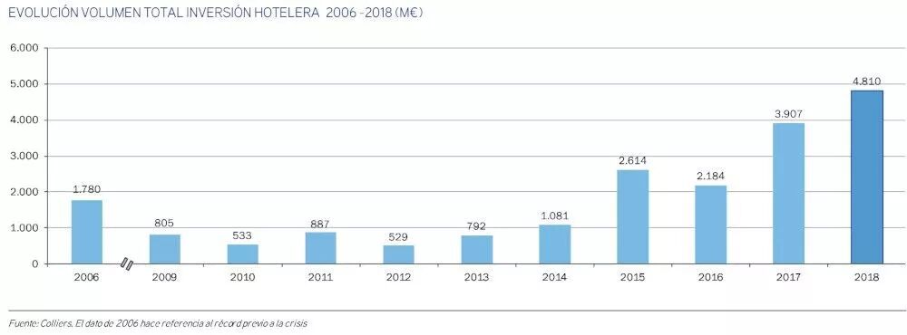 2018年西班牙酒店投資創2016年以來紀錄,同比增長23.1%。