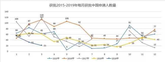 值得注意的是,中國投資者月月占據榜首位置,主申請人獲批4180人,在主申請人總量中占比超57%。