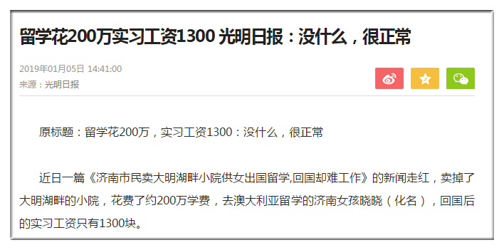 原本以為“出國就鍍一層金”,但是事與愿違,回國之后的曉曉才發現,未來看似金光大道,但是不知道如何走下去。曉曉出國5年,學費加生活費大約花費200多萬人民幣,雖然200萬在現在已經算不上一筆巨款,但以工資計算想要“回本”,卻不啻于一筆天文數字。